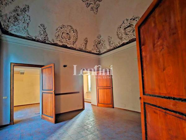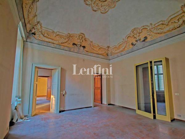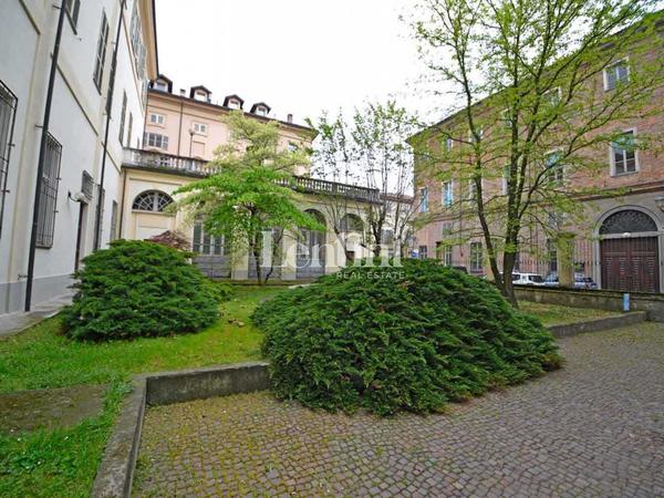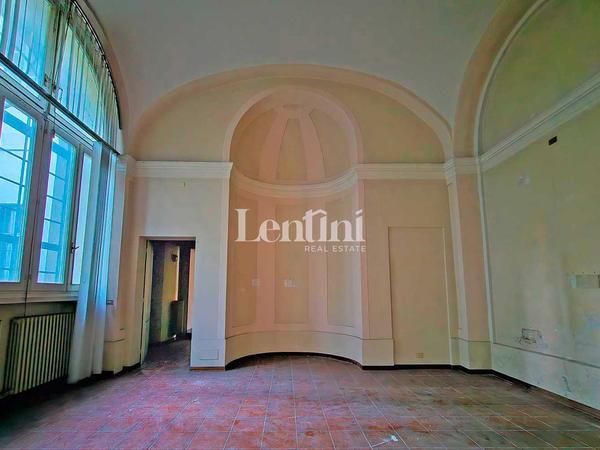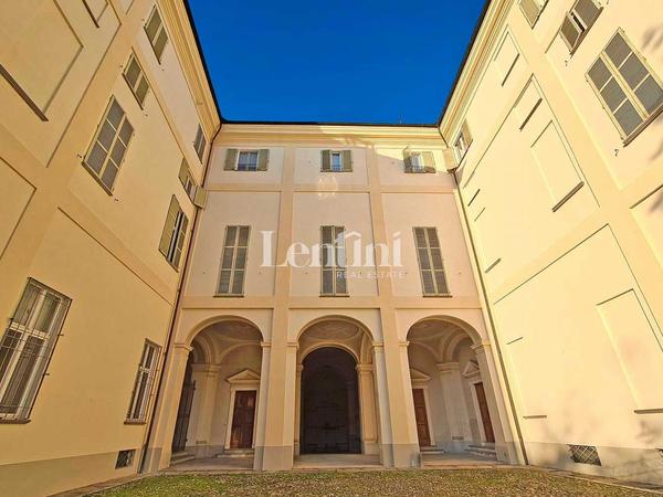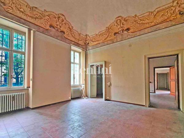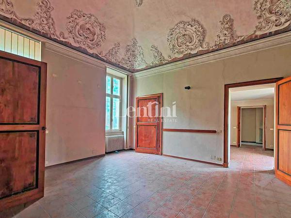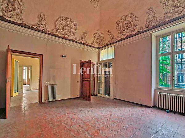 In the historical center of Casale Monferrato, inside Palazzo Marchesa dalla Valle di Pomaro, a significant and historical noble residence dating back to the 1700s, we offer for sale large property located on the ground floor. This property features an independent entrance on Via Corte d'Appello, portico with frescoed ceilings, splendid private and fenced courtyard, garden and private parking space with driveway entrance from Via Mameli. The structure is in good condition, formerly used as offices, has a total area of sq. m. 1500. The interior shows the characteristics of the period, such as high frescoed pavilion vaults and decorative plaster. The fixtures are wooden with double-glazing and the heating system is independent. In the basement, communicating with internal staircase, very spacious and original cellar rooms.