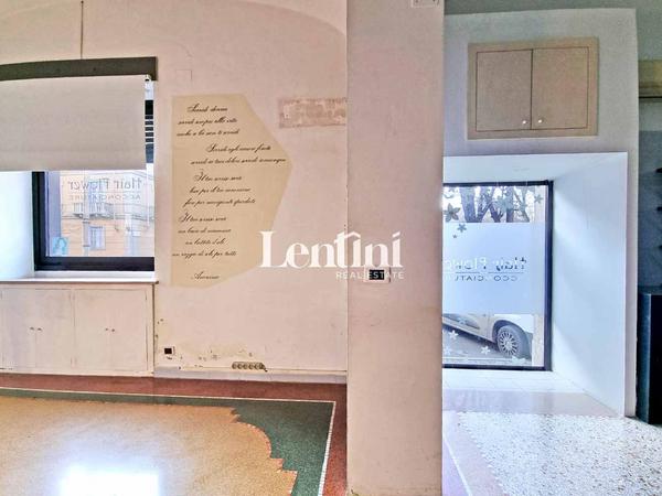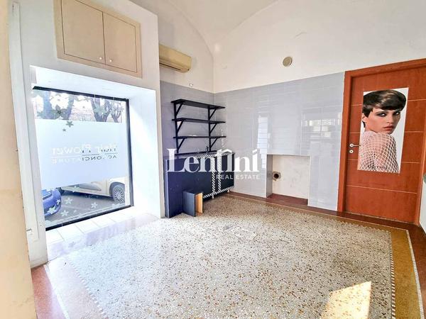 The property is located on the corner of Via Roma and Piazza San Francesco, in an area of intense pedestrian and vehicular passage. Thanks to a storefront and two large windows, the commercial space is particularly bright. The interior consists of a large main room, separated by a service area that includes bathroom with ante-bathroom and boiler.