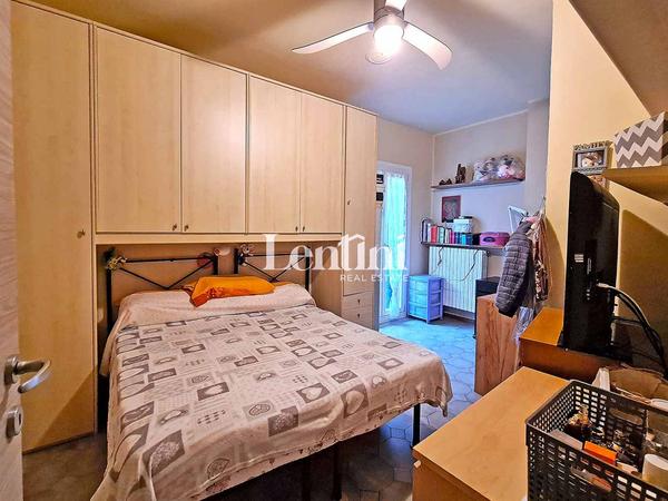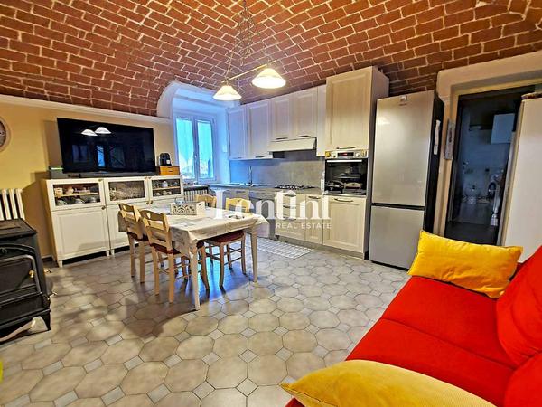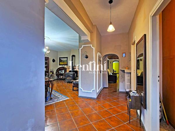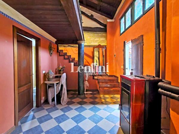 The dwelling located on the first floor, reached through an independent entrance located under a picturesque porch with exposed beams, opens onto a large kitchen with elegant hipped vaults and exposed brickwork. The floor also includes a hallway, two bedrooms and a bathroom complete with bathtub. A large covered terrace offers breathtaking views of the surrounding hills, perfect for relaxing or organising al fresco dinners. This unit has undergone a recent renovation with replacement of windows and doors, installation of a photovoltaic system and energy efficiency improvements.