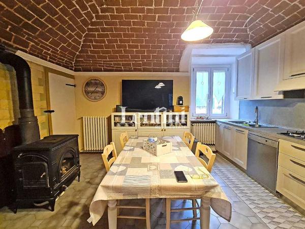 On the ground floor, the entrance gives access to a large and bright living room with suggestive pavilion vaults and a fireplace, creating a warm and cosy atmosphere. The kitchen, spacious and embellished with brick vaults, is the heart of the house. Two bedrooms, a bathroom with shower stall, a large cellar room and a convenient laundry room complete the floor.