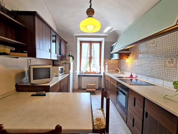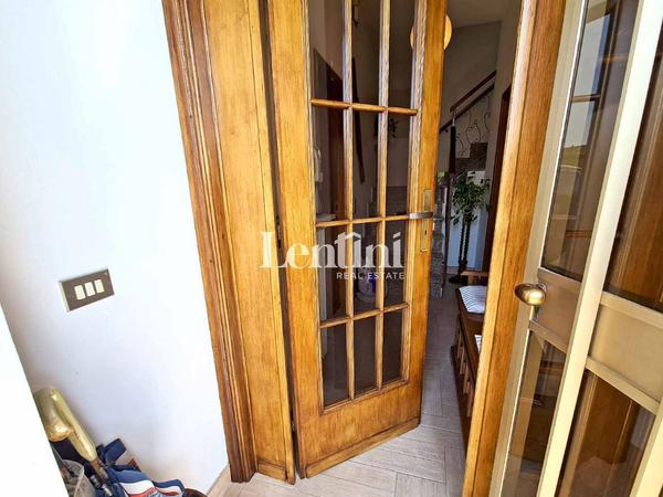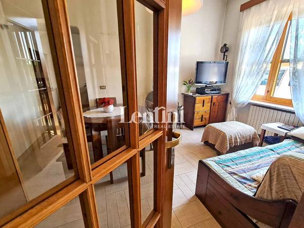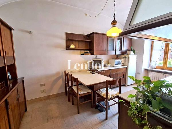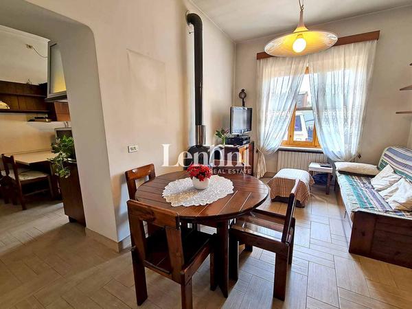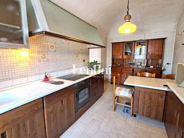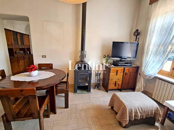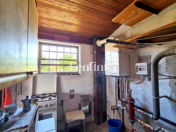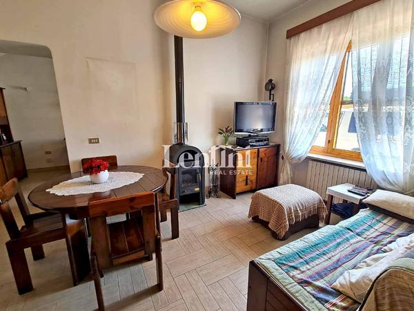 On the ground floor, the entrance opens onto a hallway that leads to the bright living room and the living kitchen, equipped with a stove, perfect for heating the room in the colder seasons. A service bathroom completes this level.