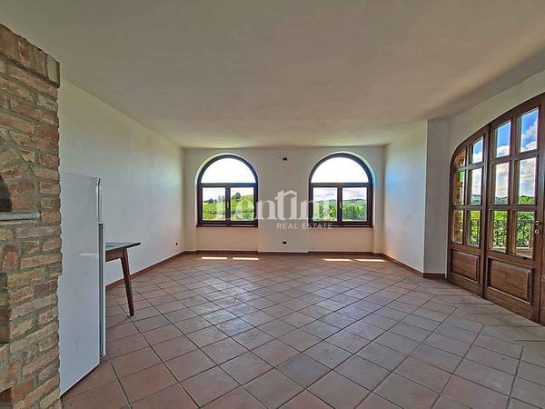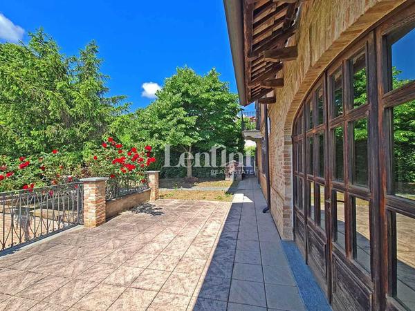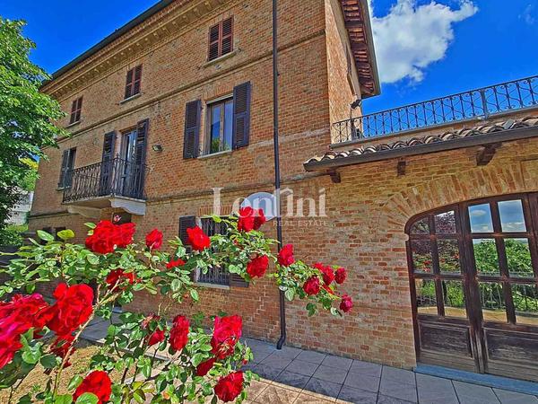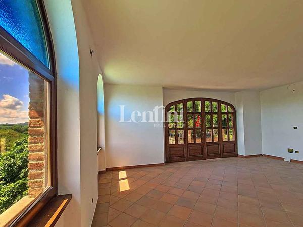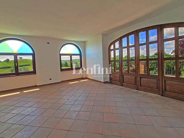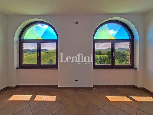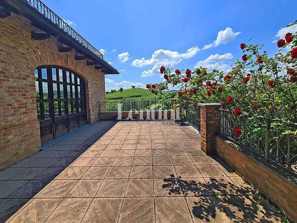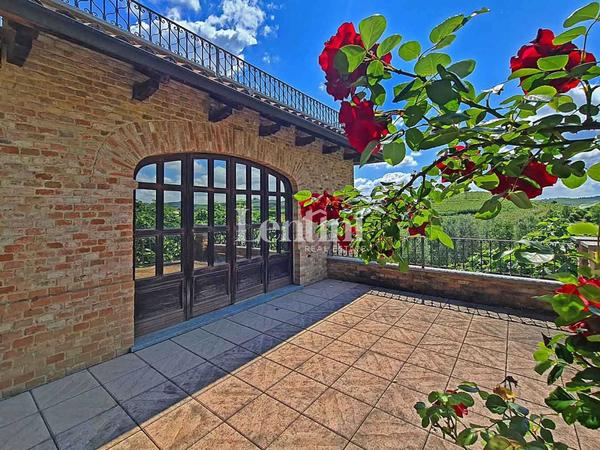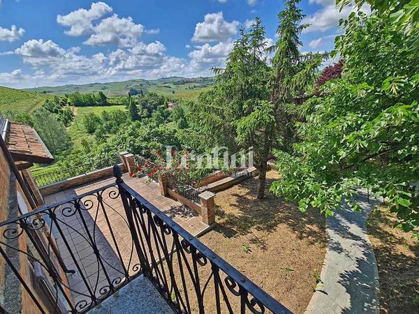 Surrounded by the smooth hills of the Asti province and immersed in the evocative wine landscapes that have been recognized by Unesco, this enchanting property opens within a lush private garden. As soon as you enter the gate you feel the immediate appeal of this property: the dominant and panoramic position offers exciting views, best seen not only from the two large terraces, but also from the spectacular windows that distinguish the interiors.
