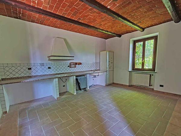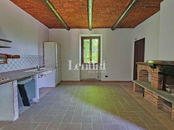 The outdoor aesthetic, entirely in exposed brick, recalls the local architectural tradition, an element that we also find in the striking brick vaults that embellish the large kitchen on the ground floor and the room in the basement, perfect for use as a tavern or a spacious wine cellar.