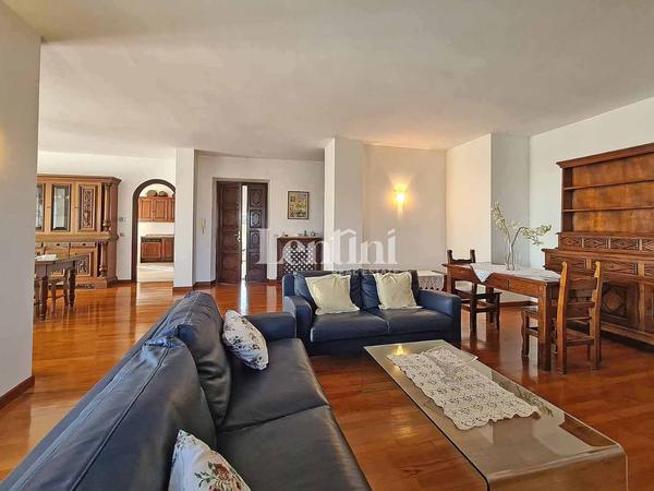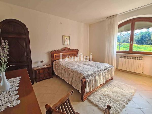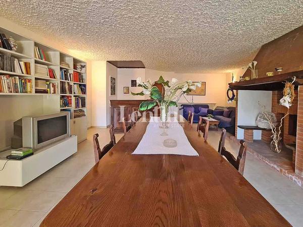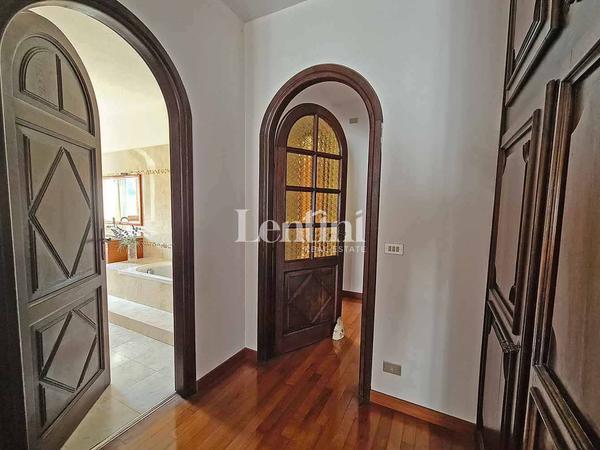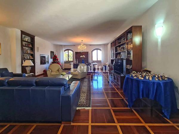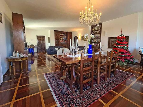 On the ground floor, adjacent to the swimming pool and with access from the portico, there is a charming double living room with bar area, dining area, lounge and an elegant fireplace. This floor is complimented by a spacious kitchen, a bathroom, and a large bedroom. An internal staircase leads to the upper floor, where a bright flat welcomes with a broad living room with parquet flooring, a hallway, an eat-in kitchen, two bedrooms and two bathrooms. This floor is further enriched by a panoramic terrace, part of which is covered, with a view of the garden, the swimming pool and the city.