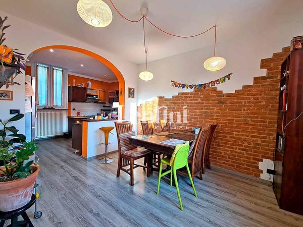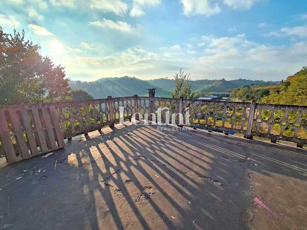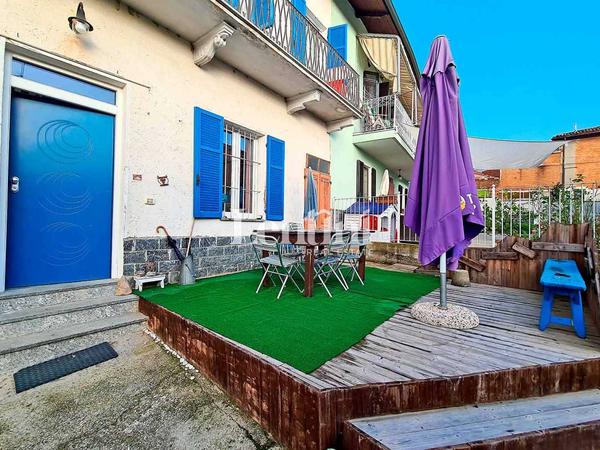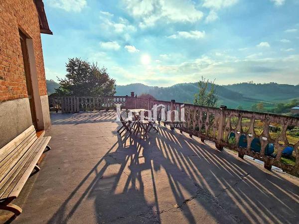 In Cunico, a charming hilltop town in the province of Asti, we offer for sale excellent housing solution free on three sides. Entrance by driveway and pedestrian with access to private courtyard. The housing portion is on two floors above ground. On the ground floor entrance, a large and original kitchen with dining area and pantry, comfortable and large living room, study. On the second floor two large bedrooms both communicating with large balcony, spacious bathroom with bathtub. A practical outer staircase leads to a large room with very bright glass windows with panoramic terrace and view on private garden. To complete the property another private garden in front of the house, garage, external laundry bathroom, technical room, three storage rooms. Property in perfect living and structural condition. Independent gas heating system.