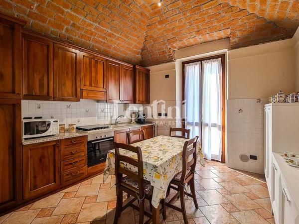Una elegante scala in pietra di Luserna conduce al secondo piano, dove la zona notte comprende due ampie camere matrimoniali, un secondo bagno e un comodo ripostiglio.