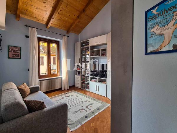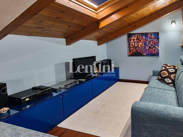Con pochi gradini si accede infine al locale mansardato, oggi utilizzato come zona relax o salottino con divano letto, perfetto come spazio jolly o studio privato.