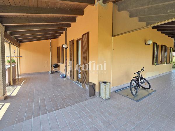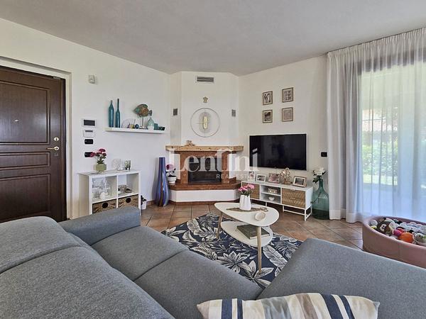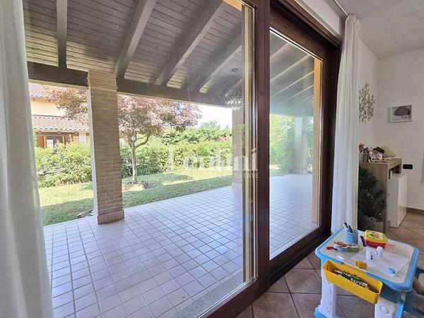 L’abitazione si sviluppa principalmente su un unico livello. L’ingresso si apre su un ampio e luminoso salone doppio, caratterizzato da grandi vetrate che affacciano sul portico e sul curatissimo giardino circostante. Un angolo relax con camino e una zona pranzo conviviale rendono l’ambiente molto accogliente. La cucina è abitabile e anch’essa collegata al porticato esterno, perfetto per pranzi e cene all’aperto. Sempre al piano terra troviamo uno studio e un primo bagno con box doccia.