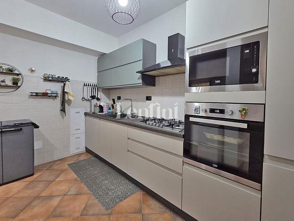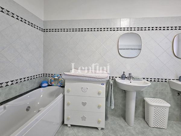 La zona notte, ben separata, è composta da due spaziose camere da letto, un comodo disimpegno attrezzato con armadi a muro e un secondo bagno dotato di vasca.