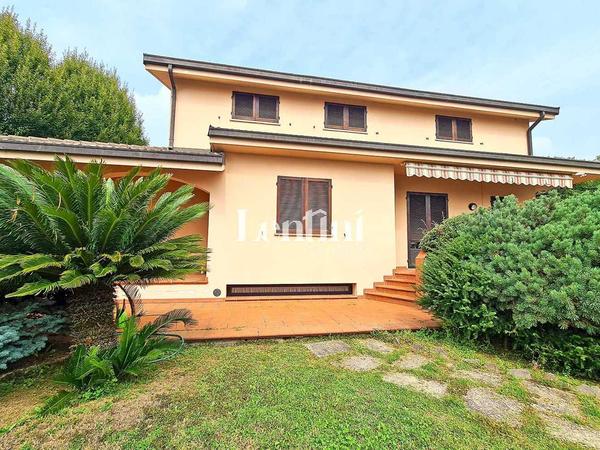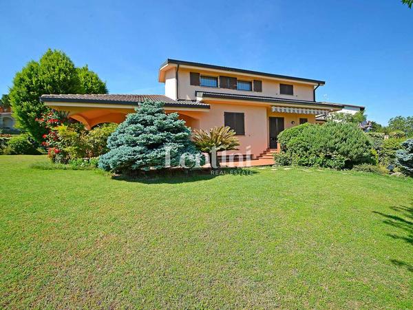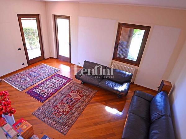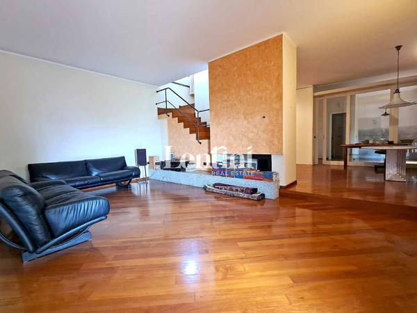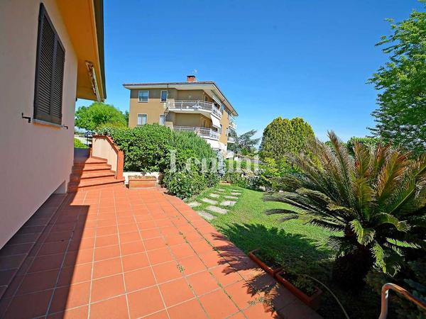 Completano la proprietà un garage doppio di circa 40 mq collegato internamente all’abitazione, una lavanderia, un locale tecnico, un secondo garage singolo, cortile privato e area di manovra.
