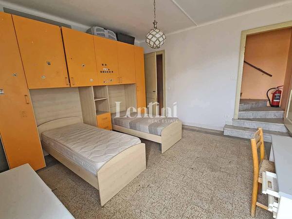 Tramite comoda scala interna si accede al primo piano dove troviamo una luminosa camera da letto con balcone. Al secondo piano altra camera da letto matrimoniale con balcone e bagno con vano doccia. Di fronte alla casa garage singolo con serranda.