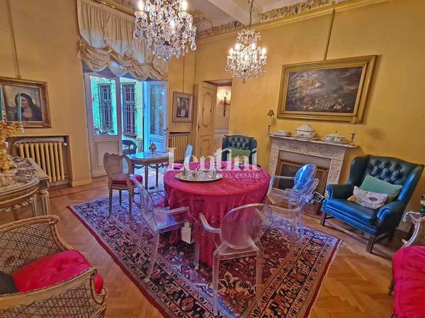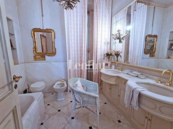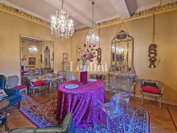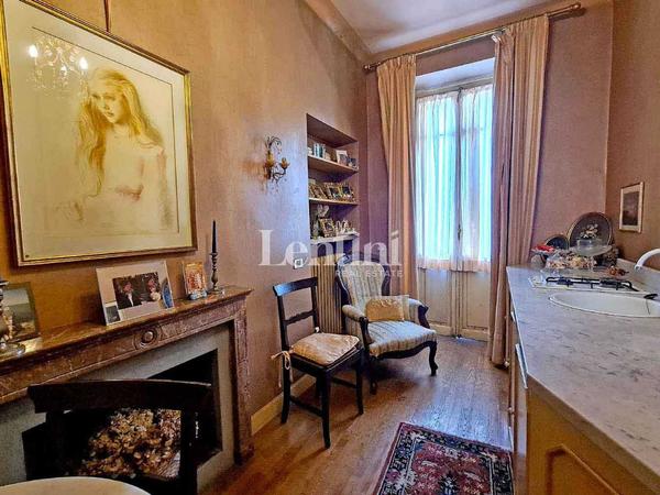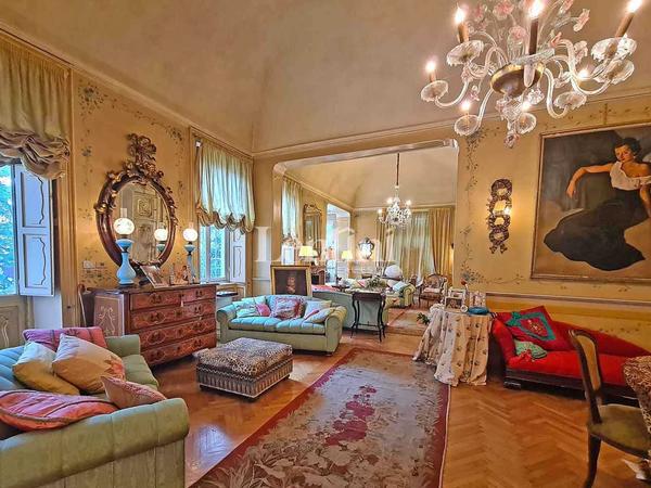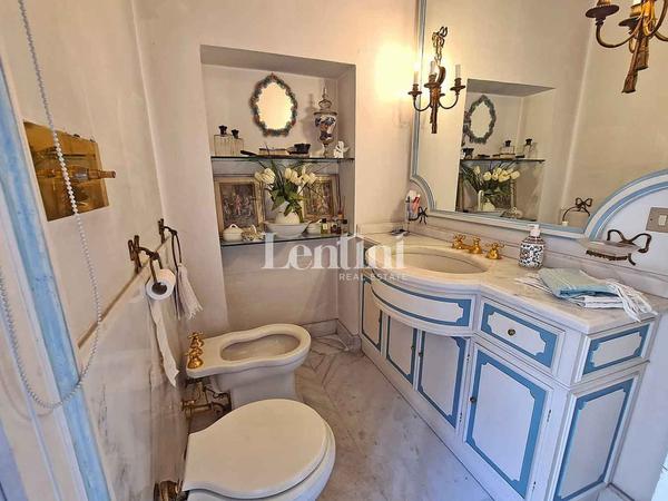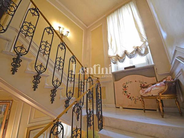 Un’imponente scala in marmo di Carrara conduce al primo piano, dove si sviluppa la zona notte composta dalla camera padronale con bagno en suite e da un’ulteriore camera. Completano la proprietà un garage di pertinenza e ambienti dal fascino intramontabile, capaci di unire il prestigio storico al comfort contemporaneo.