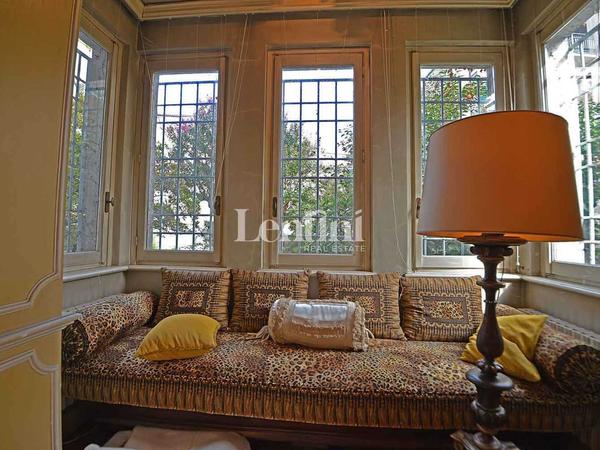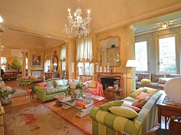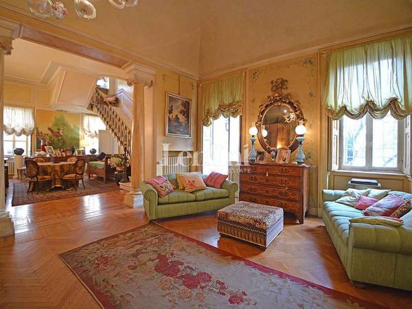 Al piano terreno un ampio ingresso introduce alla raffinata zona giorno, articolata in più ambienti. La prima parte del salone conduce a una luminosa sala relax con accesso diretto a un piccolo giardino che affaccia sulla via principale. La zona centrale, impreziosita da affreschi e modanature d’epoca, è resa ancora più accogliente dal camino, mentre un raffinato bovindo regala scorci suggestivi sul giardino principale, al quale si accede dalla sala da pranzo.