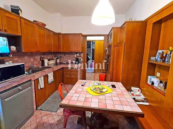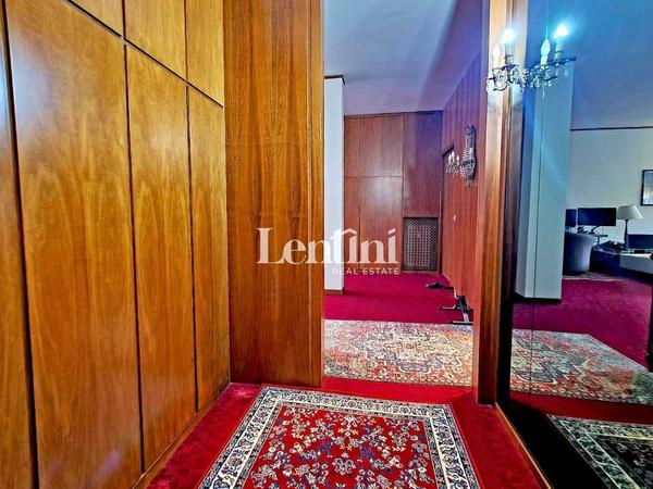 L'appartamento, di generose dimensioni, è dotato di due ingressi, uno sulla zona giorno e uno sulla zona di servizio. E' composto da un ampio salone, una cucina abitabile e tre camere da letto matrimoniali. La spaziosa sala da bagno è dotata sia di vasca che di doccia mentre il secondo bagno è utilizzato anche come lavanderia.
